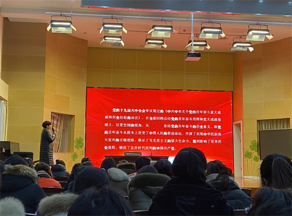 活动中,一幼园长陈英姿为全体教职工深刻阐述了党的十九届六中全会召开的重大意义,全面解读了全会的丰富内涵与核心要义,不仅让全体教职工更加深入理解了全会精神,同时还对找准贯彻落实的着力点具有实践指导意义。