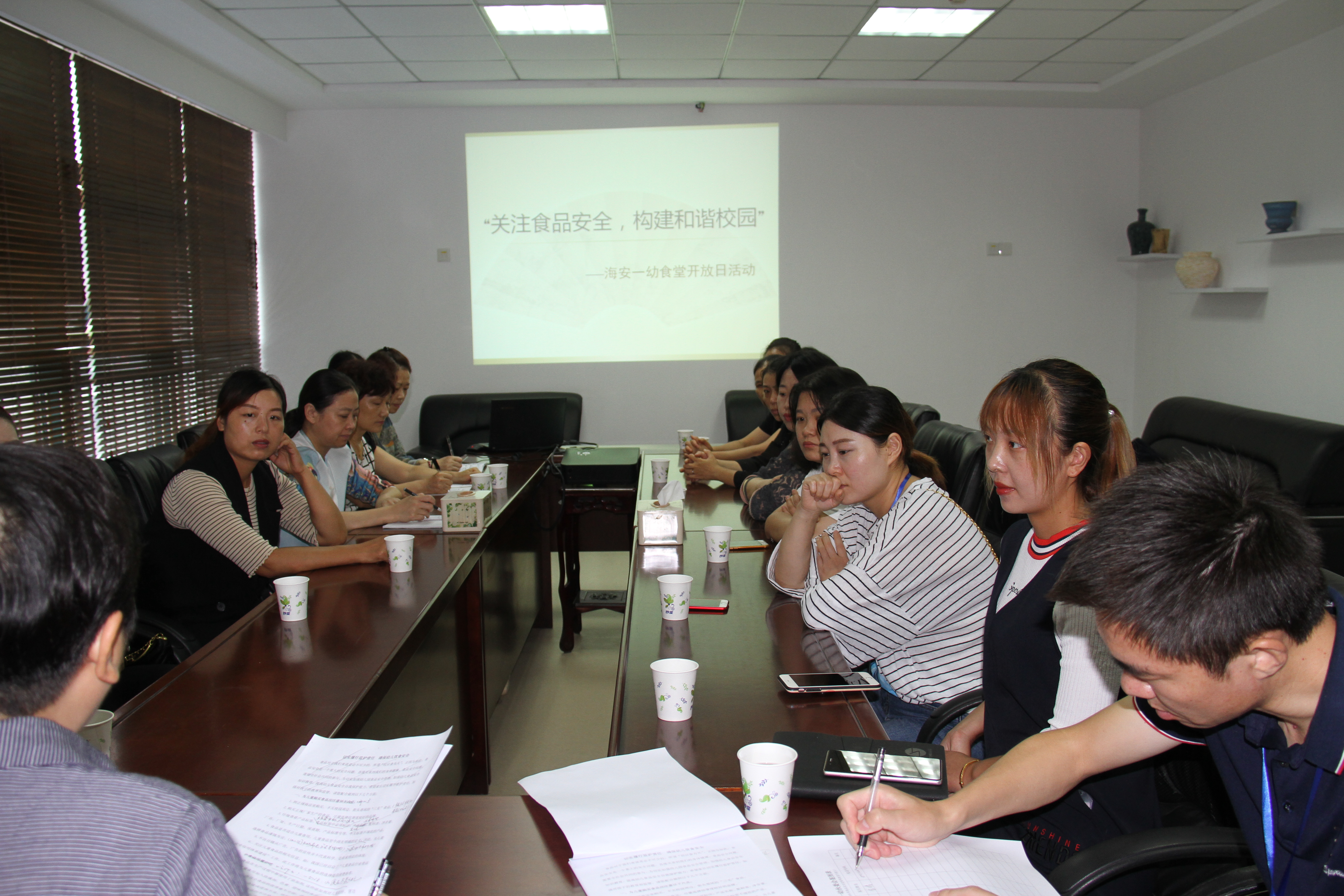 9月14——21日,海安市局组织开展食品安全宣传周活动,海安市第一实验幼儿园认真贯彻上级关于食品安全宣传周活动通知精神,积极开展“五个一”活动。9月21日,幼儿园邀请各年级家长代表,开展食堂开放日活动,组织家长代表们走进幼儿园、走进食堂。