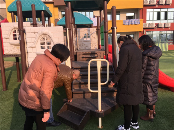 1月23— 24日,第一实验幼儿园全方位开展寒假春节前的安全大检查活动。幼儿园分管安全工作的韩世珍副园长带领幼儿园安全检查小组,检查了幼儿园的食堂、园舍、场地、电器设备、大型玩具、教学设施等,邀请消防维保专业人员、专业电工、燃气安全检查专业人员对幼儿园消防设施、电线电路、燃气设施等进行了仔细排查,并做到检查有记录,有问题及时整改。同时,幼儿园加大了放假前安全教育宣传力度,各班级采取多种方式,对幼儿进行了春节期间的安全教育,发放“致家长的一封信”向家长宣传交通安全、传染病、防火及食品安全等知识,增强家长和幼儿的安全意识,提高幼儿的自我保护能力,