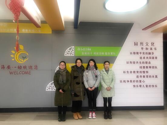 我们四名实习生满怀对教育事业的憧憬,怀揣无限的热情,于2018年2月来到海安县第一实验幼儿园实习。我们有着不同的擅长:高高瘦瘦的傅涵,从小学习国画,有扎实的绘画基础,且心灵手巧,擅长手工,在她的双手下,一张张儿童画精美绝伦;马若男是我们的万能助手,尤其擅长电脑操作,与电脑有关的不会找她就对咯;吉润——丁香一般的江南女子,温润如玉。她弹得一手的好钢琴,配上清脆的嗓音,令人无比享受;活泼开朗的薛何最喜欢的就是跳舞,看她跳舞就像一个精灵在跳动,很是精彩。我们深知要成为一名优秀幼儿教师的不易,更是迫切地希望可以通过实践来巩固知识,提高水平。我们实习生团队相信:在第一实验幼儿园实习的过程中,在指导老师的帮助下,我们会认认真真地做好自己的每一项工作,在工作中学习,在学习中思索,在思索中实践,在实践中磨砺,为将来独立从事幼儿教育工作打下良好的基础。