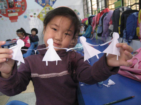 这是孩子们饶有兴趣的话题,我们从收集,介绍,制作三个方面向孩子讲述了纸的发展过程,课后许多孩子还围在黑板前问我:纸是怎么造出来的;为什么会想到造纸;有的说:我看见过古时候的书是长长的竹片。