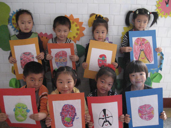 金秋十月,是收获的季节,有唱不完的歌、道不尽的祝福,今年的十月一日,更迎来了我们伟大祖国母亲六十岁的生日,在这举国欢庆的日子里,大班开展了“庆国庆、爱祖国”主题教育活动,我们充分利用社会资源,帮助幼儿了解祖国的历史进程,感受六十年的发展和变化,引导幼儿实际感受祖国文化的丰富和优秀,喜欢自己所处的生活环境,感受中华民族的伟大、自豪与骄傲,激发幼儿从小爱祖国,爱国旗、爱家乡的情感。通过开展中国的城市,绘画京剧脸谱,中国的特产,民族大联欢,为国争光的运动员等系列活动,让孩子们充分体验和感受自己国家的悠久历史和繁荣富强,进一步加深了对祖国的热爱之情。