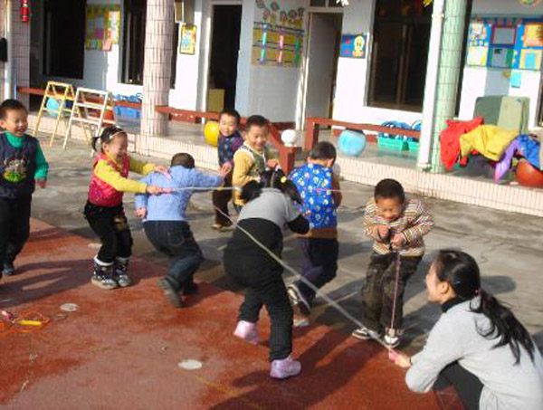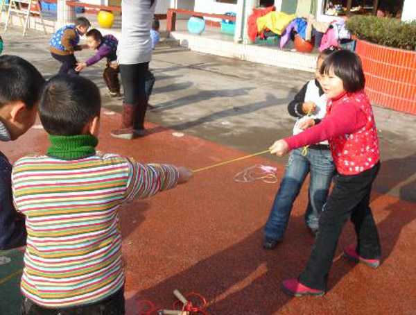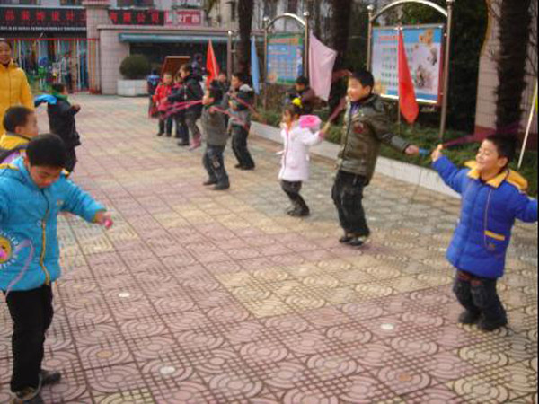 寒冬时节,为了进一步增强幼儿参与户外体育活动的积极性,夏芹老师设计了一节体育游戏活动《好玩的绳子》。幼儿参与的积极性非常高,身体得到了充分的锻炼。