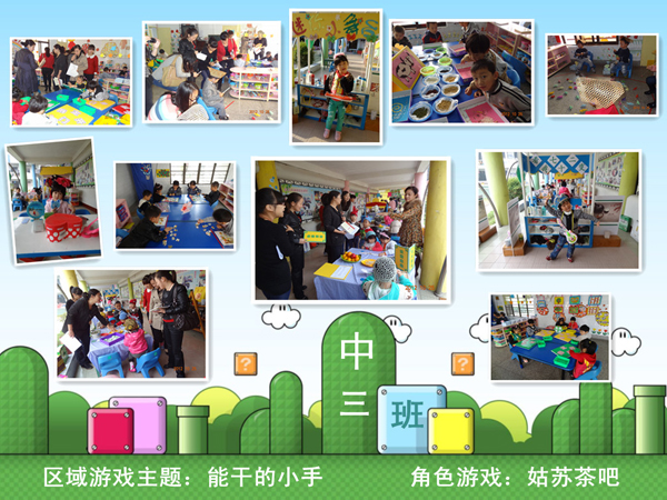 游戏是幼儿园的基本活动之一,是对幼儿进行全面发展教育的重要途径。为了提高幼儿游戏的兴趣,丰富班级游戏的种类,中班组开展了区域、角色游戏观摩评比活动。观摩活动中,各班展现了丰富多彩的游戏活动。