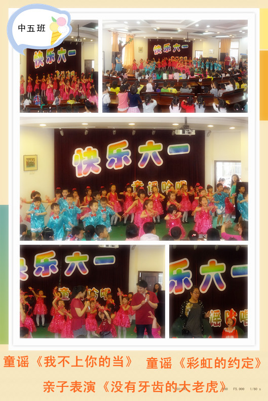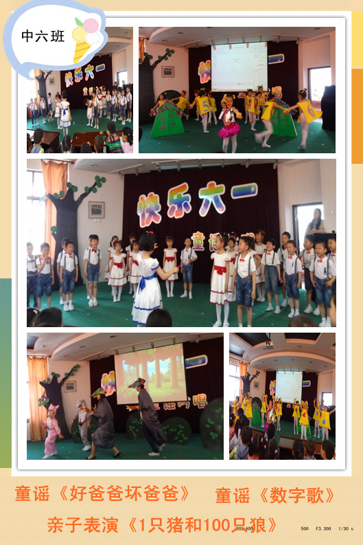 【中班活动】多彩的季节,绚丽的童年 发布时间:2013-05-28 00:00:00 浏览次数: 次 【字体:小 大】 即将弹去五月的风尘,迎接六月的时光。听,幼儿园里的歌舞声、荡起了一片欢乐的海洋!当鲜红的太阳跃上地平线时, 我们又迎来了新的一天,迎来一个快乐而有意义的节日。它是我们小朋友们自己的节日,我们要尽情的欢畅,我们要为它增添光彩!孩子们的快乐不仅是老师的期望,同时也是爸爸妈妈的期望。瞧!中班组的全体小朋友们和爸爸妈妈们一起,用自己最美的歌舞、童谣和最精彩的亲子表演给自己送上最真心的祝福! 分享到: 【打印正文】
