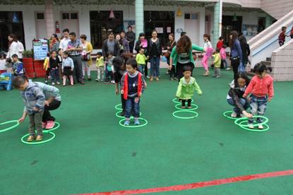 六月的蓓蕾绽新绿,六月的笑脸更灿烂,在六一儿童节到来之际,我园小班组老师精心设计游戏、想方设法准备游戏材料、积极筹划了一场大型的亲子游艺活动。在活动中,孩子们和家长开展了《袋鼠向前冲 》、《过小河 》、《蚂蚁搬豆》等集竞赛性、游戏性、趣味性于一体的亲子游戏项目,既锻炼了幼儿的体质,培养了孩子的参与意识、竞争意识和合作意识,让幼儿和家长体验到了游戏活动所带来的乐趣,增强了孩子和家长的沟通与交流,达到了亲子同乐的效果,又促进了家园的密切合作。瞧,大家玩得多开心啊!