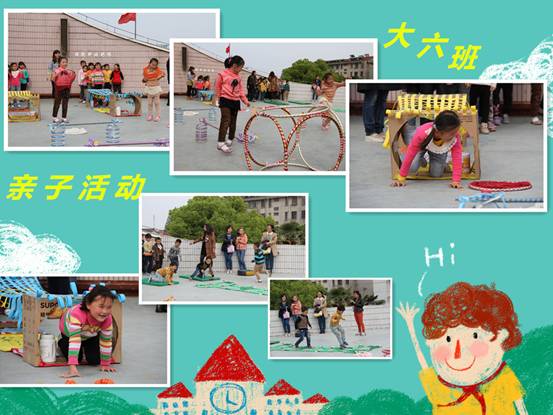 4月23、24日下午,海安第一实验幼儿园操场上人声鼎沸、热闹非凡,大班组三百多名家长受邀参加了自制体育器械游戏活动。瞧!钻爬乐、抬花轿、挑水比赛、跨栏接力赛……各班活动精彩纷呈,让人目不暇接,孩子和家长们玩得津津有味、热火朝天、兴奋不已。有的孩子开心地说:“这个器材是我和家人一起做的,我很喜欢玩!”有的家长兴奋地说:“运动一下,真的很快乐,这样的活动趣味无穷。”
