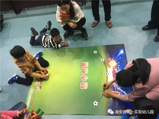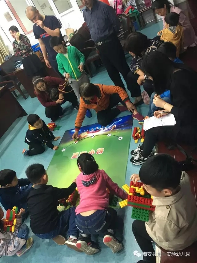 5月4日上午,小选手和家长们一起参加了幼儿园组织的模拟比赛。孩子们都在规定时间内搭建好了各自比赛用的主体结构,举手示意后,听到裁判员喊:“预备-开始”,比赛开始啦!看小家伙们的认真劲儿,瞄准、弹射,哦耶!进一个球、进两个球、进三个球……比赛激烈地进行着,虽然现场气氛紧张,但欢呼声、笑声充满了整个赛场。