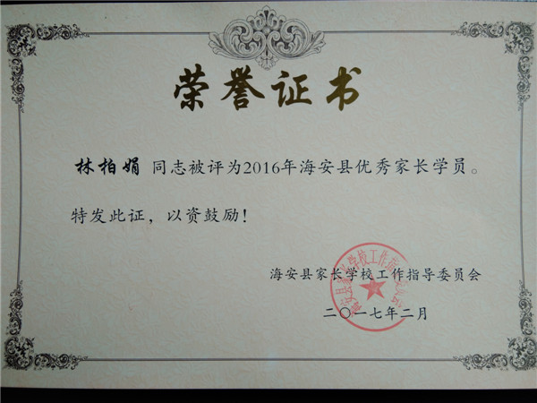 【集体和个人荣誉】2016年我园家长学校工作获奖情况
