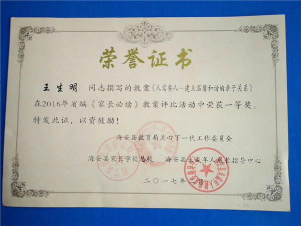 附:关于表彰2016年海安县家长学校工作质量优等分校等的通知
