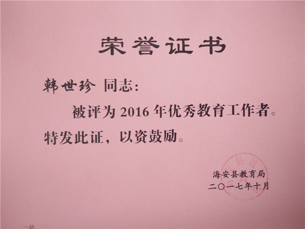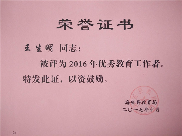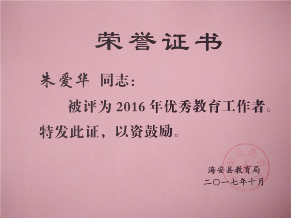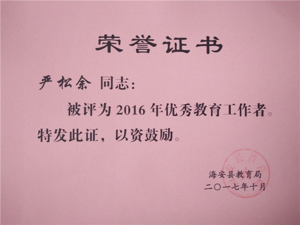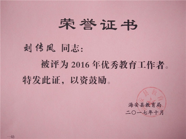 【个人荣誉】我园多名教师被评为2016年优秀教育工作者