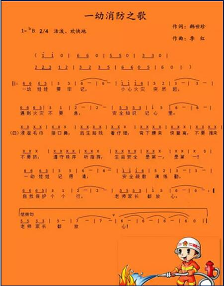 海安一幼始终坚持把安全工作放在首位,高度重视校园和班级安全的消防安全管理。11月份,在广泛征集幼儿、家长、教师建议的基础上,共同倾力打造的“一幼消防之歌”终于新鲜出炉了。轻快活泼的旋律、朗朗上口的说白,把消防安全知识巧妙融合在歌曲里,深受孩子们喜爱。经过县级层层选拔,我园的“一幼消防之歌”演唱作品经县消防大队推荐送市消防儿童“萌歌会”参赛。