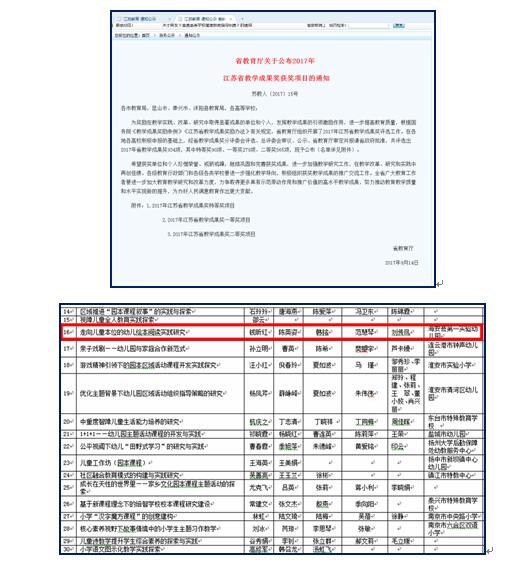 一幼与阅读结缘始于上世纪九十年代,十多年来,一幼人不忘初心,潜心笃行,始终前行在阅读研究的路上,不断寻求更合孩子的绘本阅读活动方式,在价值引领、活动架构、环境创设、教师指导等多个层面积极探求绘本阅读向儿童回归的有效策略,建构基于实践的“儿童本位阅读”操作范式,在理论和实践层面形成了自己的“儿童本位阅读”教育主张。2017年4月,研究成果参加江苏省教学成果奖评选,历经县、市、省三级层层选拔,荣膺基础教育类教学成果二等奖(南通市只有2所幼儿园获奖)。