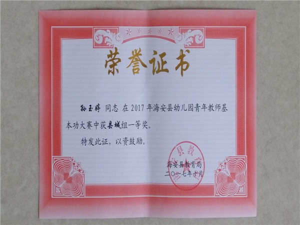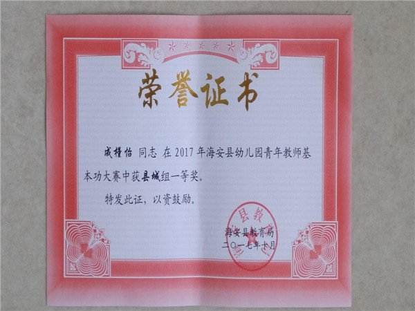 【个人荣誉】我园三位老师在青年教师基本功大赛中获县城组一二等奖