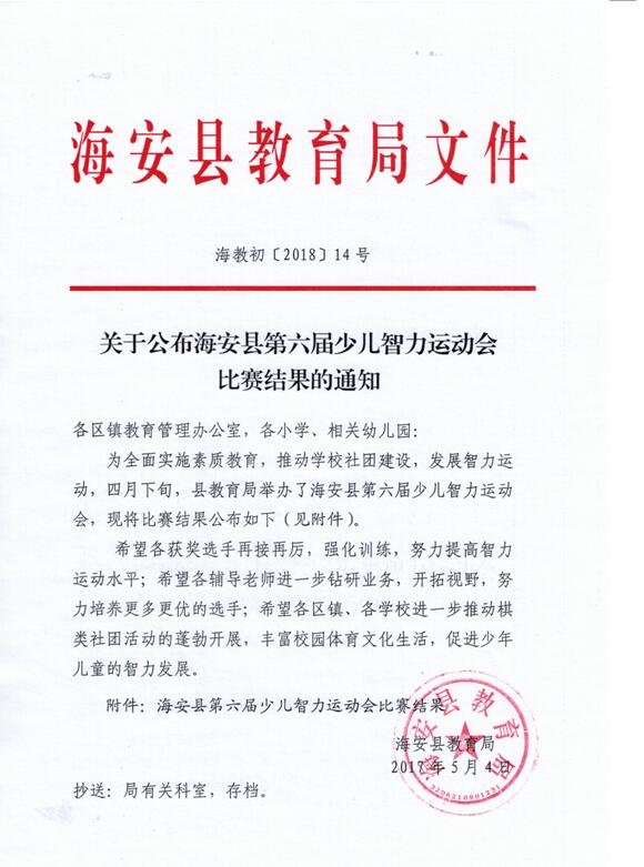 海安县第六届少儿智力运动会单项奖