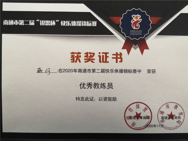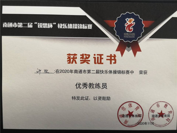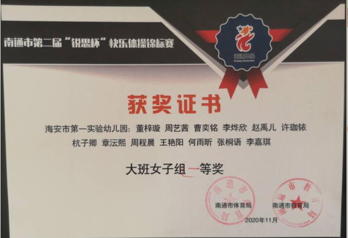 【集体荣誉】我园幼儿在南通市第二届“锐思杯”快乐体操锦标赛中荣获一等奖