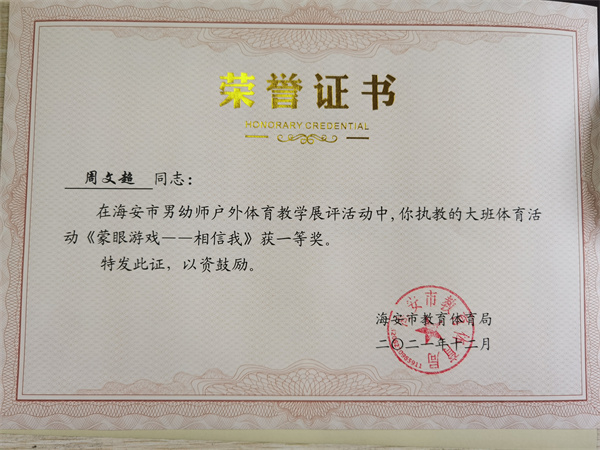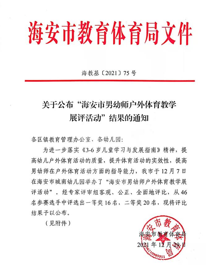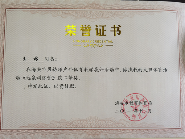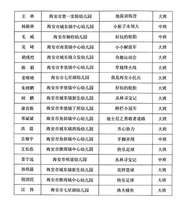【个人荣誉】我园男教师在海安市男幼师户外体育教学展评活动中获一、二等奖