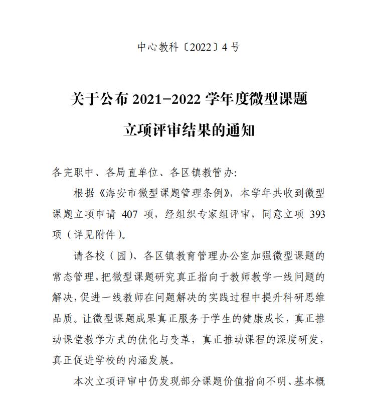 【个人荣誉】我园教师2021—2022学年度微型课题立项