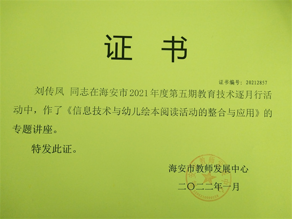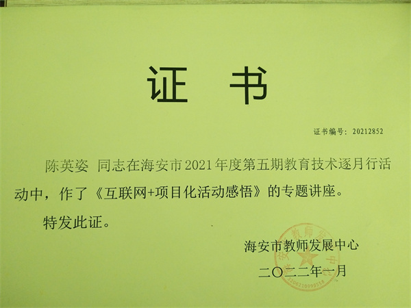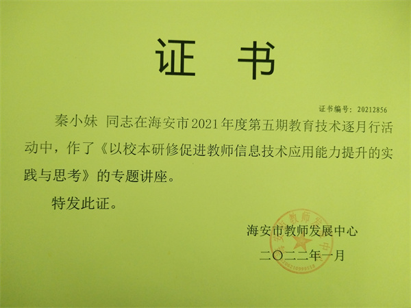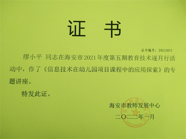 【个人荣誉】我园教师在2021年第五期教育技术逐月行活动中作讲座收到好评